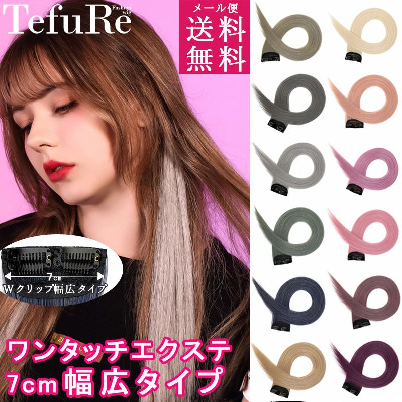 幅広タイプのワンタッチエクステです。 従来品の約2倍の幅があるので、 インナーカラーやメッシュを目立たせたい方に最適! コスプレ、ダンス、ハロウィンはもちろん、 最近はライブやイベントなど「推し」の色を“差し色”にする方が急増中! ★スタッフオススメポイント★ ・カラーが目立ちやすい! ・艶消し加工で地毛に馴染む! ・耐熱性だからヘアアイロンも使える! ・クリップにシリコンゴムがついて落ちにくい! さらに地肌に触れるクリップ部分にメッシュネットがついて 優しい着け心地になりました! ぜひ色々なヘアアレンジにも挑戦してみて下さいね。