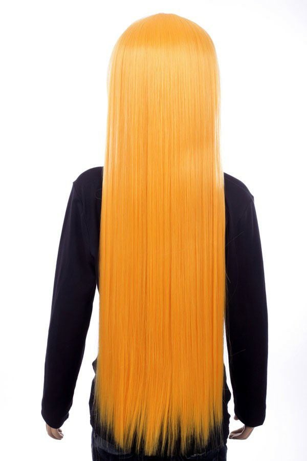 オレンジ 茶色 ブラウン 黄色 イエロー 橙色 ロング 腰まで ロングウィッグ アニメ コスプレ ウイッグ コスプレウィッグ 毛量多め 加工用ウィッグ