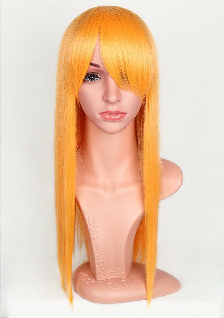 メール便1点まで対応 コスプレウィッグ 絡みにくい 軽量 【ウィッグネットプレゼント】ライトロング オレンジイエロー F3