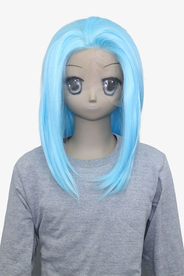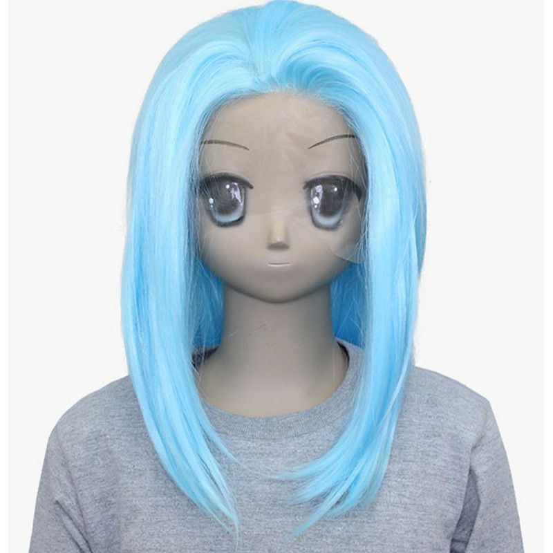 ブルー 青髪 紺 濃 オールバック フロントレース ウィッグ アニメ コスプレ ウイッグ コスプレウィッグ 手編み 加工用ウィッグ