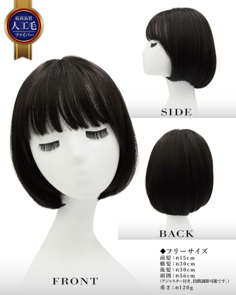 自然なショートボブ 360度どこから見ても自然なショートボブスタイル。 使いやすく、幅広いご年齢の方にもフィットするスタイルになっております。 「見た目の自然さ」にこだわった最高品質の繊維をつかっております。 地毛のように馴染みやすく、耐熱仕様なので、ヘアアイロンやドライヤーのご使用も可能です。 自分の髪と同じように扱えるので、ウィッグを使ったことがない方でも簡単に、安心してお使いいただけます。 ナチュラルな魅力を存分にお楽しみください。