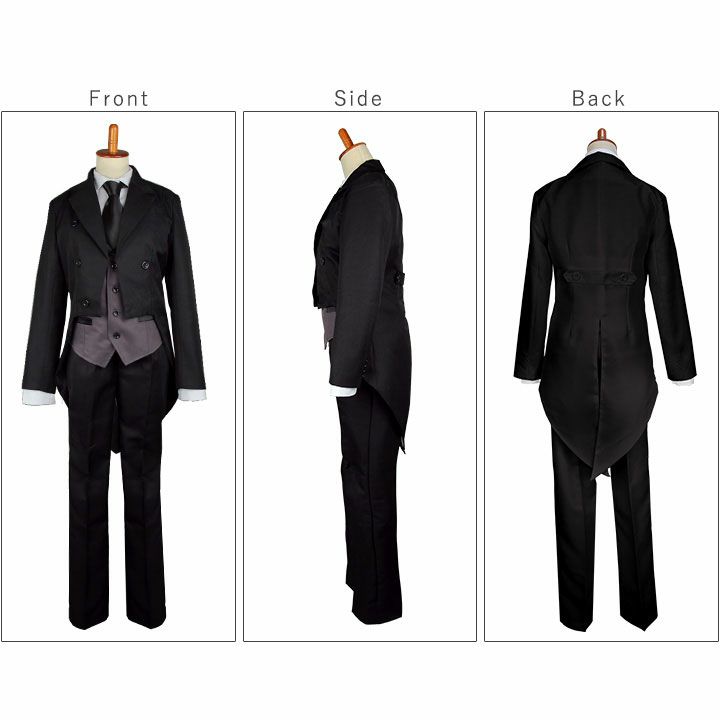 燕尾服 バトラー 使用人 黒 モノトーン ゴシック ブラック 執事 コスプレ コス コスチューム 衣装 スーツ カフェ ハロウィン リニューアル 学園祭 文化祭 富士達 ふじたつ