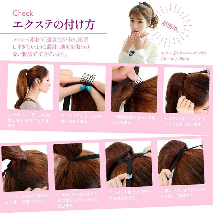 ポニーテールへアやツインテールヘアが楽しめるエクステです。