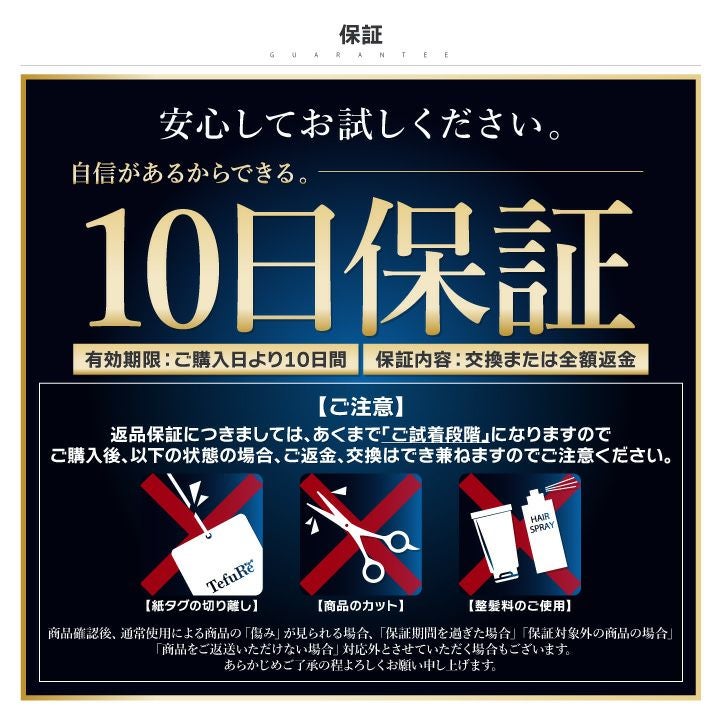 ●一度かぶったら手放せなくなる自然さ、「最高級高品質人毛」を使用。 ●「覗かれても安心」革新的な「手編み」技術により「驚くほど自然なつむじと毛の立ち上がりを再現」。 ●男性の思う「このぐらいがいい」「ちょうどいい」を再現したスタイル。 ●「伸縮性」があり、どんな頭の形でもフィットし、「しっかり深くかぶれて」取れにくい。 ●「軽さ」「快適さ」を追求した新構造、毎日かぶりたくなるウィッグ。 ●「簡単」に装着でき、「10日保証」だから初めての方にもオススメ。