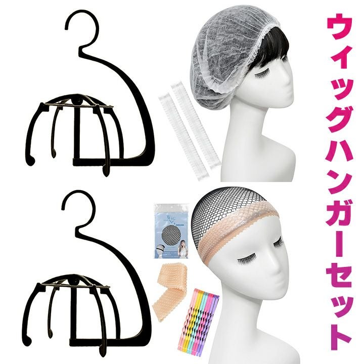 7点セット ウィッグ ハンガー ウィッグネット 滑り止め ピン 【ウィッグハンガーセット】