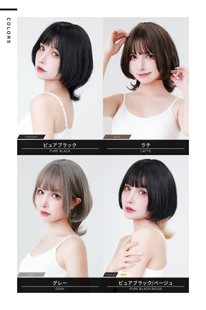 「切らない、染めない、髪を着替える。」 「テフリウィッグで簡単ヘアチェンジ」 マッシュの丸みとウルフのクールさを合わせ持つ、かわいくてカッコいい、オシャレスタイル。 注目商品です。 【前髪】 前髪は眉下ぱっつんバング。 束感アレンジで透け感のある、シースルーバングにも。 自由度が高く、お好きな前髪スタイルをお楽しみいただけます。 【レングス】 肩上までのレングス、襟足の長さが程良くバランスを保ちます。 サイドバングから後まで、メリハリがつきすぎないのもポイント。 【シルエット】 一つ一つスタイリストがカット。 自然なレイヤーがお顔周りを包み、小顔効果も。 【つむじ】 限りなく自然な「I型つむじ」を再現。 違和感のない自然な頭頂部で、上から覗かれても安心です。 艶消し耐熱性ファイバー採用。 美容室で染めたような自然な発色を再現しました。 ドライヤーやヘアアイロンもご使用いただけます。 カットもカラーリングも要らない手軽なお洒落を、ぜひお試しください。 個性的なファッションを楽しみたい方や、髪を染められない学生さんにもオススメです。