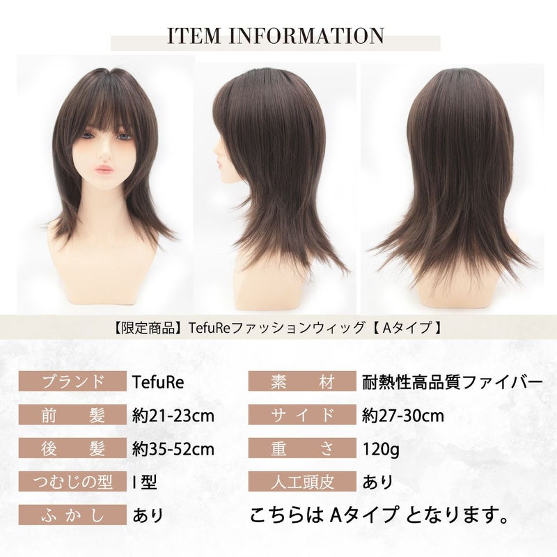 新しい髪形、髪色に! 「切らない、染めない、髪のお着替え!」 大人気TefuReファッションウィッグから【限定商品】が登場! 数量限定、再入荷なしとなりますので早いもの勝ち! ぜひこの機会をお見逃しなく♪ 艶消し耐熱性ファイバー採用。 美容室で染めたような自然な発色なので、ウィッグだとバレにくいです! ドライヤーやヘアアイロンもご使用OK! 巻き髪やストレート、カール付けなどのアレンジも可能です。
