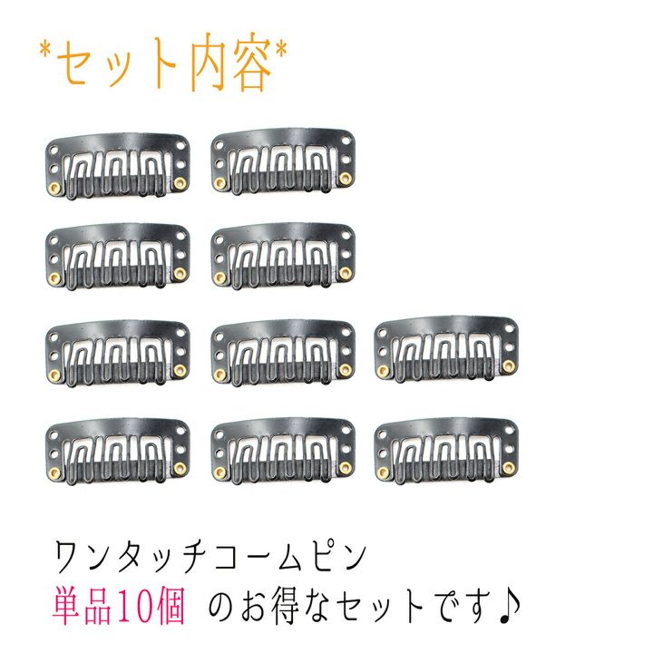 1セット持ってると便利!ワンタッチピンが豪華10個セットにて登場! ・ワンタッチで簡単に装着可能! ・縫い留め用の穴が空いているため、フルウィッグやエクステの固定や強化、 補修・お直しに最適! ・約3cmと使い勝手の良い大きさで、様々な場所へお使いいただけます。