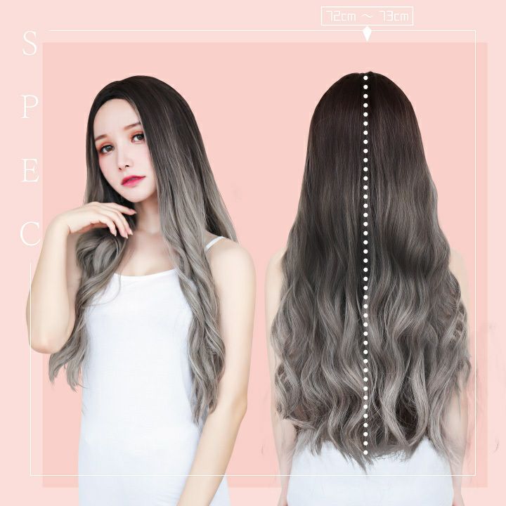 新しい髪型、髪色に! 「ウィッグで簡単ヘアチェンジ!」 センターパートが魅力のロングウェーブ。 地毛ではなかなか試せない真ん中分けの前髪をウィッグで試してみませんか? 大胆におでこを見せる前髪には、気持ちを高揚させ、自然と自信が湧いてくるような不思議な力があります。 気になるフェイス周りは、自然な黒髪とグレージュのグラデ-ションで、すっきりとした印象に見せてくれます。 さらに、Sカール状の緩めのウェーブで軽さと柔らかさを出し、上品なのに色っぽい“大人のウェーブヘア”に仕上がっています。 韓国メイクとの相性もよく、ほどよいウェーブ加減でヘアアレンジも簡単に楽しめます。 艶消し耐熱性ファイバー採用。 美容室で染めたような自然な発色を再現しました。 ドライヤーやヘアアイロンもご使用いただけます。 カットもカラーリングも要らない手軽なお洒落を、ぜひお試しください。 個性的なファッションを楽しみたい方や、髪を染められない学生さんにもオススメです。