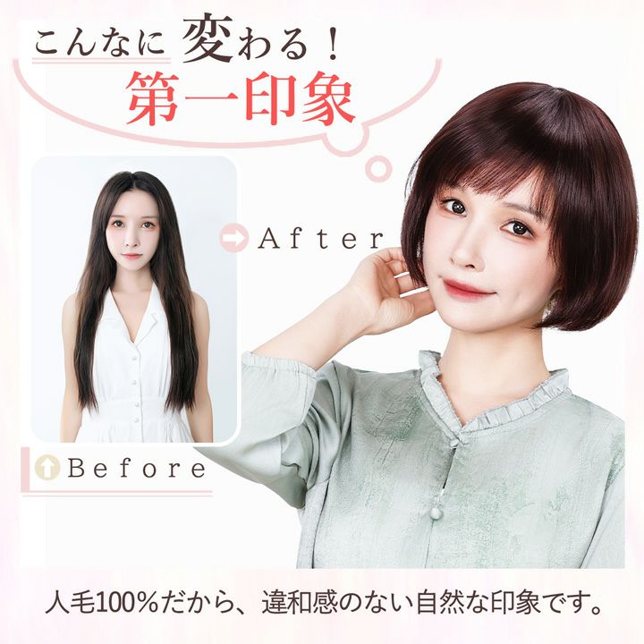 ピン無しなのにしっかり留まる!ボリュームアップや白髪隠しにぴったりです。