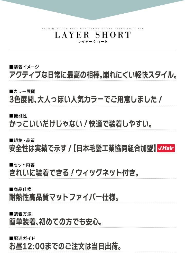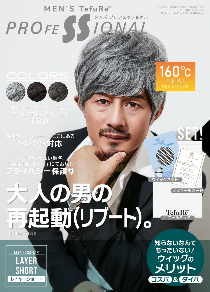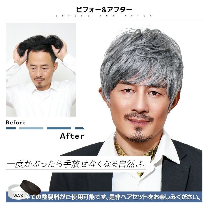 アクティブな日常に最高の相棒。汗をかいても崩れにくい軽快スタイル。 【髪質】 日本人男性の髪質を再現した高品質耐熱艶消しマットファイバー素材。 【内部構造】 ソフトメッシュが高いフィット感と、快適な着用感を実現。 【つむじ】 肌色人工スキンで限りなく自然なつむじを再現。 【植毛技術】 3D立体植毛で自然な毛の「立ち上がり」を再現。 【生え際】 「生え際フカシ加工」で前髪が萎れない。 【締め付け】 後部のアジャスターでお好みの締め付けに調整可能。 【伸縮性】 頭の形に馴染んで、きれいにフィット。 【モミアゲ】 内臓シリコンプレートで浮かないモミアゲ。 【軽さ】 軽量だから疲れない。