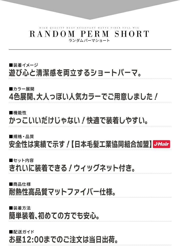 遊び心と清潔感を両立するショートパーマ。 【髪質】 日本人男性の髪質を再現した高品質耐熱艶消しマットファイバー素材。 【内部構造】 ソフトメッシュが高いフィット感と、快適な着用感を実現。 【つむじ】 肌色人工スキンで限りなく自然なつむじを再現。 【植毛技術】 3D立体植毛で自然な毛の「立ち上がり」を再現。 【生え際】 「生え際フカシ加工」で前髪が萎れない。 【締め付け】 後部のアジャスターでお好みの締め付けに調整可能。 【伸縮性】 頭の形に馴染んで、きれいにフィット。 【モミアゲ】 内臓シリコンプレートで浮かないモミアゲ。 【軽さ】 軽量だから疲れない。
