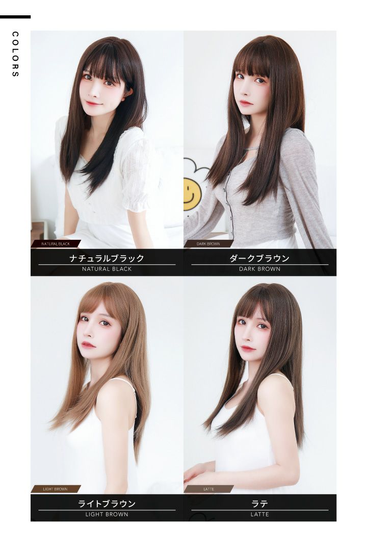 「切らない、染めない、髪を着替える。」 「テフリウィッグで簡単ヘアチェンジ」 SNSリサーチの結果、最も愛されているロングストレート。 【前髪】 前髪は眉下ぱっつんバング。 束感アレンジで透け感のある、シースルーバングにも。 自由度が高く、お好きな前髪スタイルをお楽しみいただけます。 【レングス】 長すぎず、短すぎない胸上までのレングス。 軽く、遊びのある毛先。 SNSリサーチの結果、最も愛されているロングスタイルです。 【シルエット】 広がりを抑えたサラサラ質感が、女性らしさをより印象づけます。 サイドが長めなので、小顔効果も。 全ての角度から見て欲しい、そんなシルエットです。 【つむじ】 限りなく自然な「I型つむじ」を再現。 違和感のない自然な頭頂部で、上から覗かれても安心です。 艶消し耐熱性ファイバー採用。 美容室で染めたような自然な発色を再現しました。 ドライヤーやヘアアイロンもご使用いただけます。 カットもカラーリングも要らない手軽なお洒落を、ぜひお試しください。 個性的なファッションを楽しみたい方や、髪を染められない学生さんにもオススメです。
