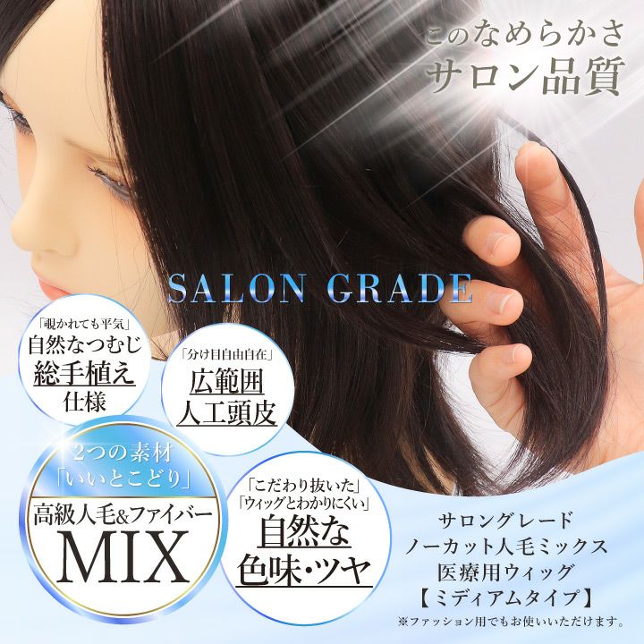他の画像を見る 世界に1つだけ、あなただけのウィッグを作りませんか? 【送料無料】医療用ウィッグ カット前 小さめ 大きめ 人毛 MIX ミディアム セミロング ショート ボブ ウィッグ 小顔 自然 レディース かつら 医療用 治療 抗がん剤 バレない 黒 茶 脱毛症 薄毛 普段使い 【サロン品質 人毛MIX ノーカットウィッグ ミディアムタイプ】 当店特別価格 ¥ 39,600 税込 カートに入れる お気に入りに登録する