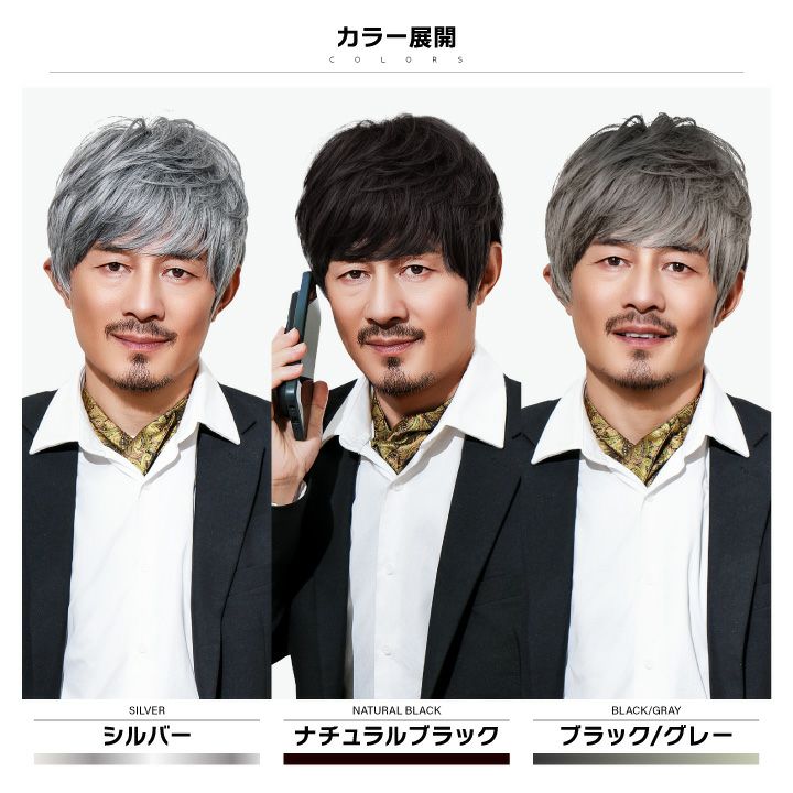 説得力が違う! 技術に裏付けされた高品質マットファイバーウィッグ バレない メンズウィッグ ウィッグ ショート 男性用 メンズ 白髪 薄毛 脱毛症 頭頂部 増毛 かつら 自然 ブラック シルバー 【ナチュラルショート】