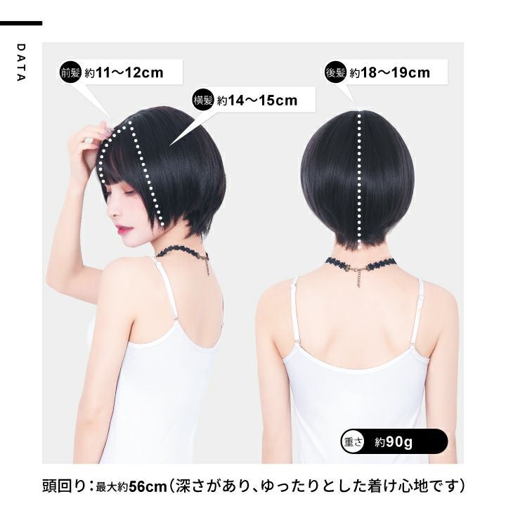 新しい髪型、髪色に! 「ウィッグで簡単ヘアチェンジ!」 耳かけできる長さと丸いシルエット。 女性に似合う、ショートヘア。 前髪はふんわり自然な軽さのストレートバング。 耳かけできるサイドの長さで、気になる顔周りをカバー。 全体にレイヤーを入れ、軽やかな印象に仕上げました。 バックは重みを残し、丸みのあるシルエットにカットし、 クールになり過ぎず、女性に似合う好印象ショートになっています。 お手持ちのヘアワックスなどを馴染ませるだけで、 毛先に動きが出て、より自然なスタイリングが楽しめます。 艶消し耐熱性ファイバー採用。 美容室で染めたような自然な発色を再現しました。 ドライヤーやヘアアイロンもご使用いただけます。 カットもカラーリングも要らない手軽なお洒落を、ぜひお試しください。 個性的なファッションを楽しみたい方や、髪を染められない学生さんにもオススメです。