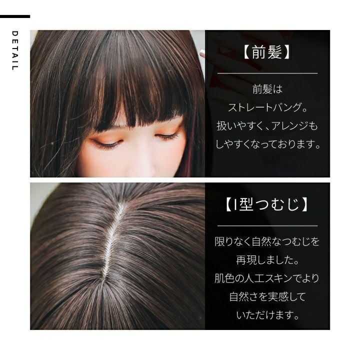 新しい髪型、髪色に! 「ウィッグで簡単ヘアチェンジ!」 MeJo(ミージョ)最大の魅力は、見せ方次第で変わる「第一印象」。 “カッコいい”にも、“カワイイ”にも変身できる! 毛先の隙間からチラリと覗くインナーカラー。 毛先の外ハネで動きをつけ、こなれ感を演出。 見え隠れするインナーカラーで抜け感を醸し出す最新ヘアスタイル。 艶消し耐熱性ファイバー採用。 美容室で染めたような自然な発色を再現しました。 ドライヤーやヘアアイロンもご使用いただけます。 染めずに、切らずに、新しい形のファッションスタイルを築き上げる! 楽しみ方は無限大∞! 個性的なファッションを楽しみたい方や、髪を染められない学生さんにもオススメです。 憧れの「インナーカラー」を「MeJo」で味わってみませんか?