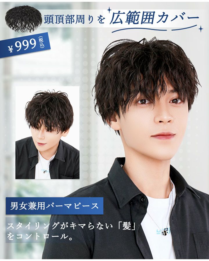 プチプラ!お手軽パーマピース クリップで止めるだけ!着脱簡単 男女兼用 ヘアピース
