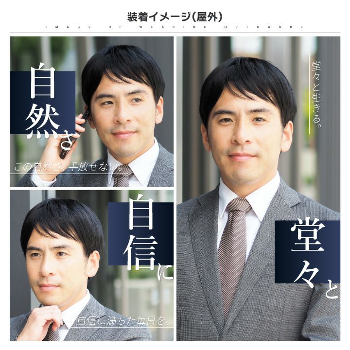 ●一度かぶったら手放せなくなる自然さ、「最高級高品質人毛100%」を使用。 ●「覗かれても安心」革新的な「手編み」技術により「驚くほど自然なつむじと毛の立ち上がりを再現」。 ●男性の思う「このぐらいがいい」「ちょうどいい」を再現したスタイル。 ●「伸縮性」があり、どんな頭の形でもフィットし、「しっかり深くかぶれて」取れにくい。 ●「軽くて、通気性」の良い「シルクメッシュ2重構造」で快適。ラクラク習慣化。 ●「簡単」に装着でき、「10日保証」だから初めての方にもオススメ。