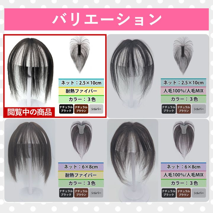 「ピン無し 前髪・つむじ用ウィッグ」