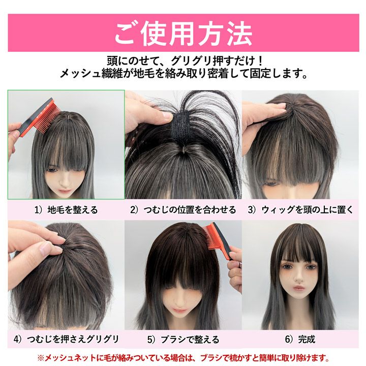 ピン無しなのにしっかり留まる!ボリュームアップや白髪隠しにぴったりです。