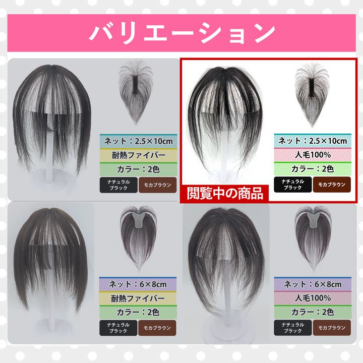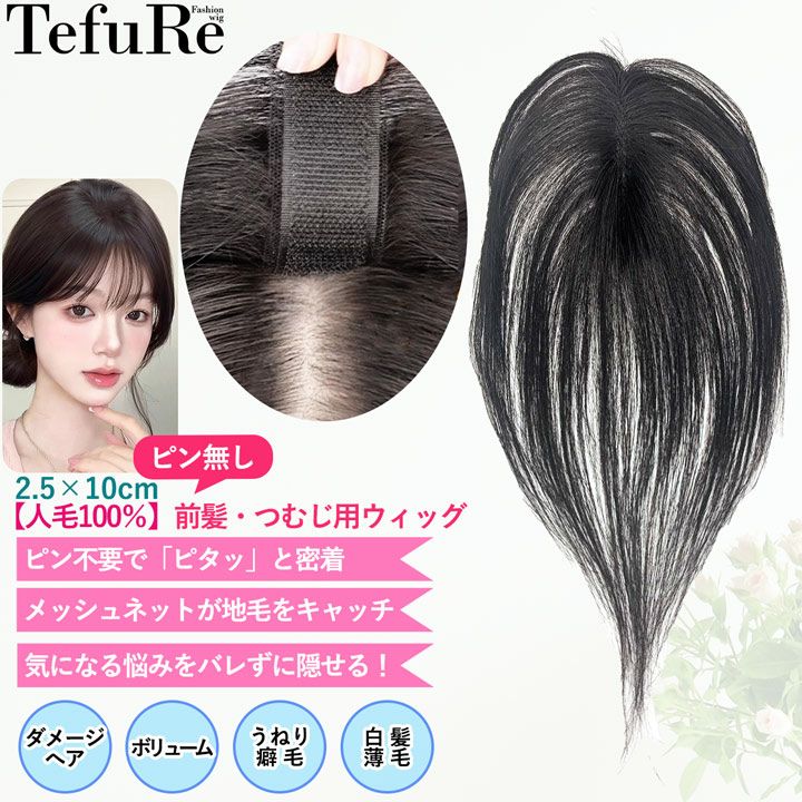 ピン無し 部分ウィッグ 人毛 前髪ウィッグ つむじウィッグ ウィッグ レディース 白髪隠し ボリュームアップ 薄毛隠し エクステ ポイントウィッグ 【人毛100% ピン無し前髪・つむじ用ウィッグ 2.5×10cm】