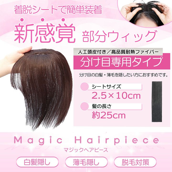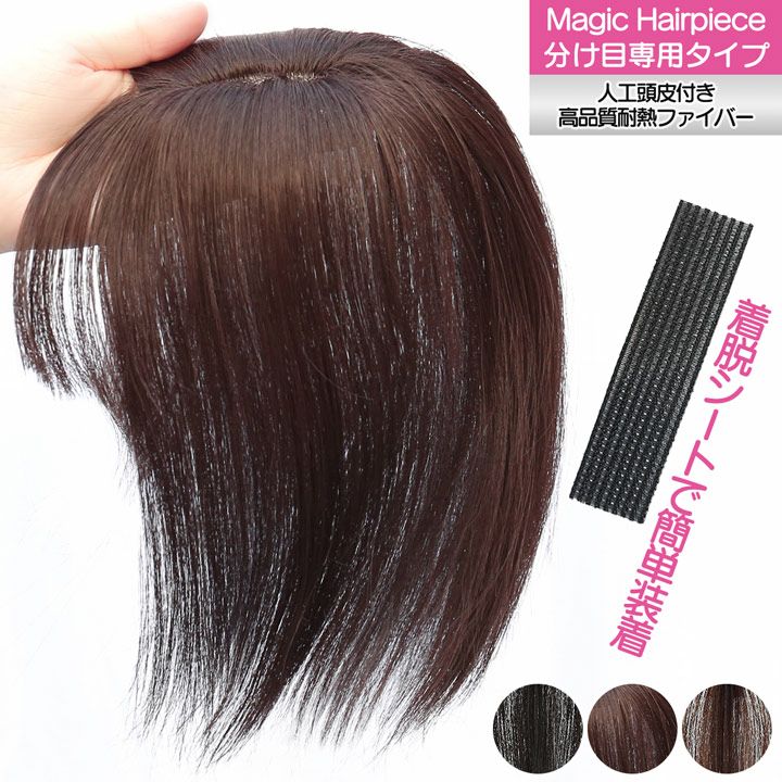 【人工頭皮付き】 マジックヘアピース 分け目専用タイプ 前髪ウィッグ 部分ウィッグ ヘアピース つむじウィッグ 白髪隠し 薄毛 ボリュームアップ ウィッグ エクステ