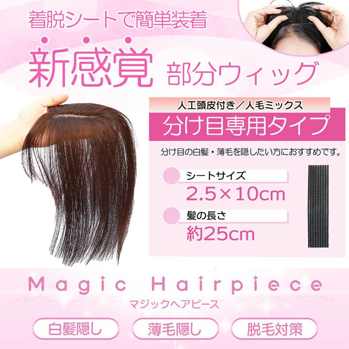 【人工頭皮付き】 人毛ミックス マジックヘアピース 分け目専用タイプ 前髪ウィッグ 部分ウィッグ ヘアピース つむじウィッグ 人毛 白髪隠し 薄毛 ボリュームアップ ウィッグ エクステ
