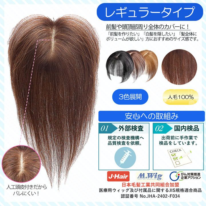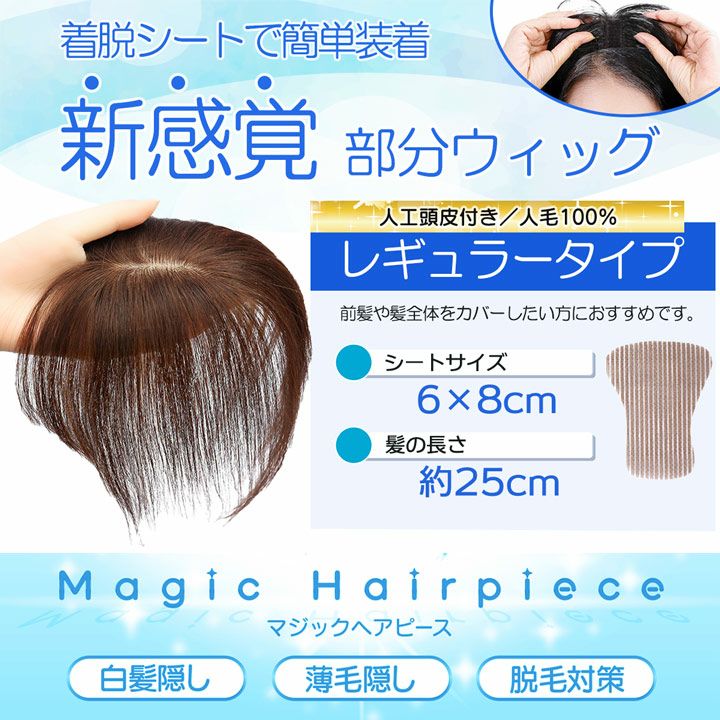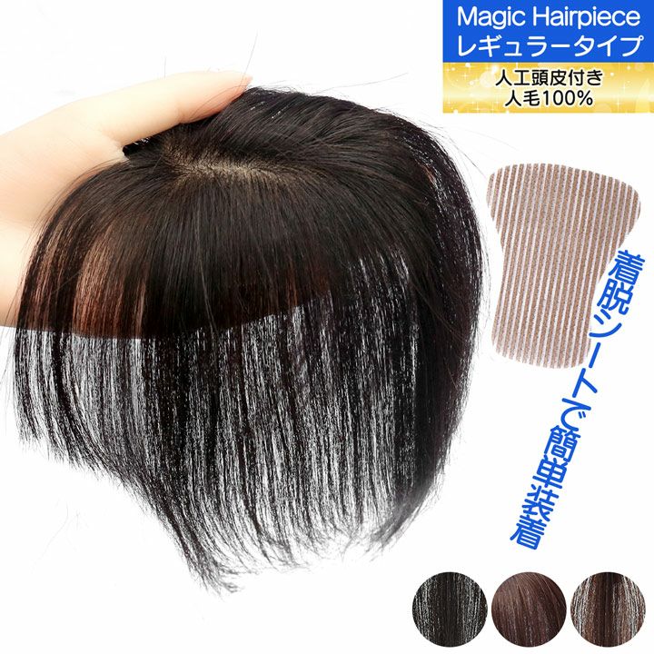 【人工頭皮付き】人毛100% マジックヘアピース レギュラータイプ 前髪ウィッグ 部分ウィッグ ヘアピース つむじウィッグ 白髪隠し 薄毛 ボリュームアップ ウィッグ エクステ