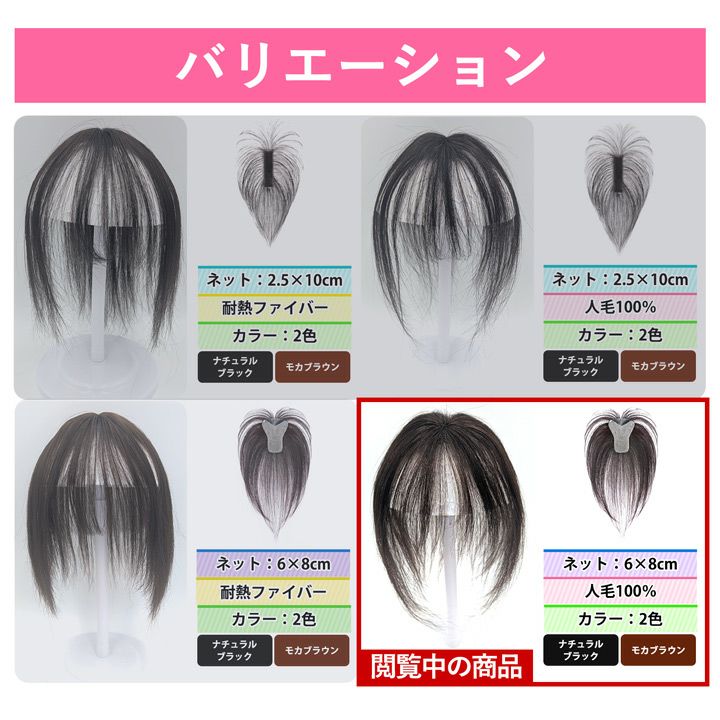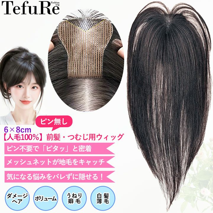 ピン無し 部分ウィッグ 人毛 前髪ウィッグ つむじウィッグ ウィッグ レディース 白髪隠し ボリュームアップ 薄毛隠し エクステ ポイントウィッグ 【人毛100% ピン無し前髪・つむじ用ウィッグ 6×8cm】