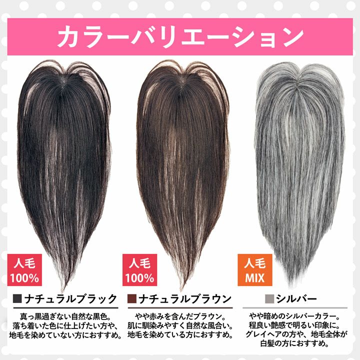 ・多様な人毛をミックスして生産しております。自然さを出すために白髪や茶髪を混ぜております。