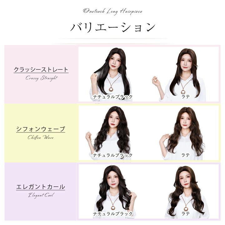 他の画像を見る ピンで留めるだけ 一瞬で誕生 印象美人 3スタイル 2カラー エクステ ワンタッチ ヘアピース 部分ウィッグ 頭頂部 つむじ 自然 ボリューム ロング ウィッグ ストレート カール ウェーブ 【ワンタッチロングヘアピース】 当店特別価格 ¥ 4,950 税込 カートに入れる お気に入りに登録する