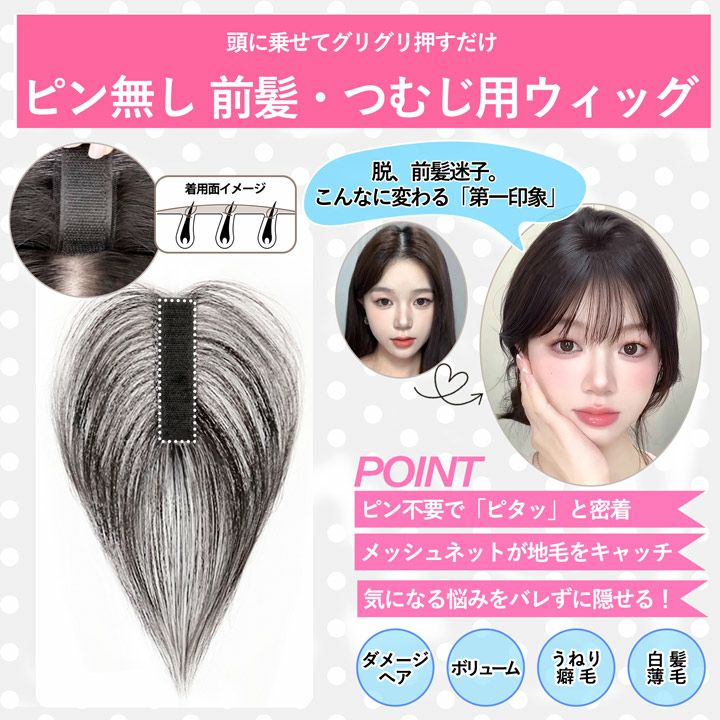 他の画像を見る 驚異の密着力! ピン無しなのに、しっかり留まる。外出先や風の強い日も安心 ピン無し 部分ウィッグ 前髪ウィッグ つむじウィッグ ウィッグ レディース 白髪隠し ボリュームアップ 薄毛隠し エクステ ポイントウィッグ 【ファイバー製 ピン無し前髪・つむじ用ウィッグ 6×8cm】 当店特別価格 ¥ 2,180 税込 カートに入れる お気に入りに登録する