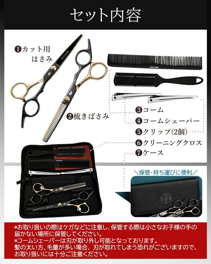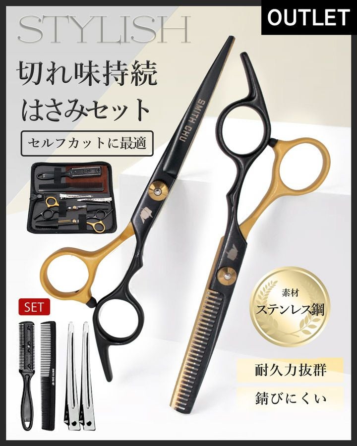 他の画像を見る ちょっぴり訳ありでお得 はさみ&すきばさみセット ご自宅でのセルフカットに便利 【アウトレット】ハサミセット(光沢有) すきばさみ 痛くない カット用 くし はさみ カットバサミ ヘアカット セルフカット ハサミ クリップ コーム コームシェーパー 【アウトレット/ケース付き はさみセット】 当店特別価格 ¥ 1,650 税込 在庫切れ 詳細を見る お気に入りに登録する